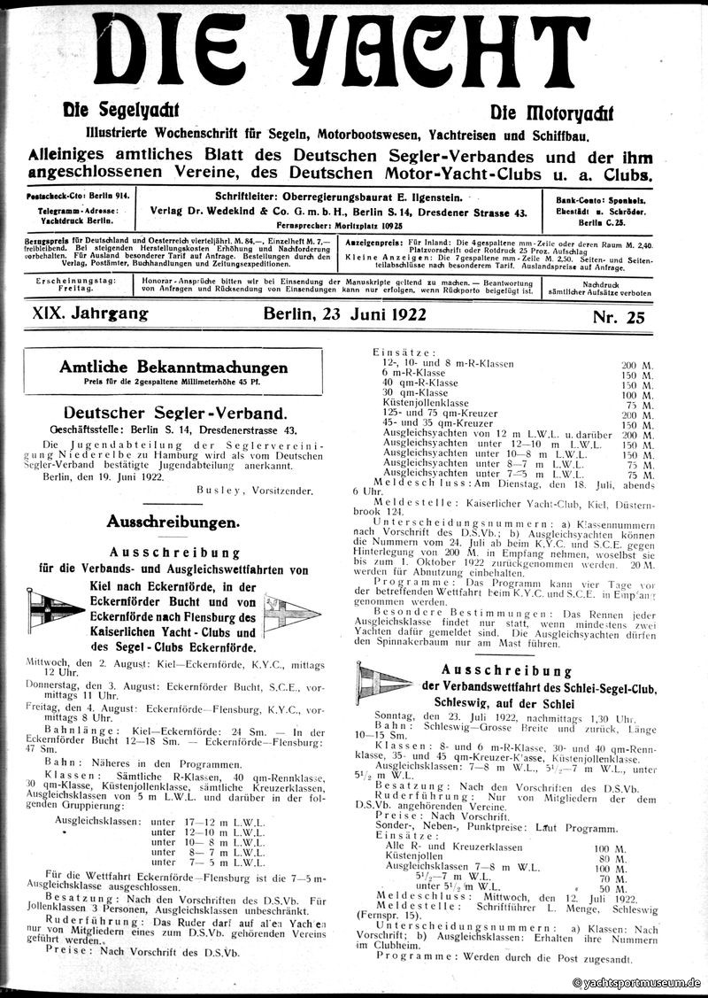 1.Offene deutsche Wettfahrten des D.S.V.