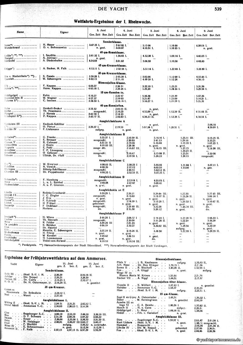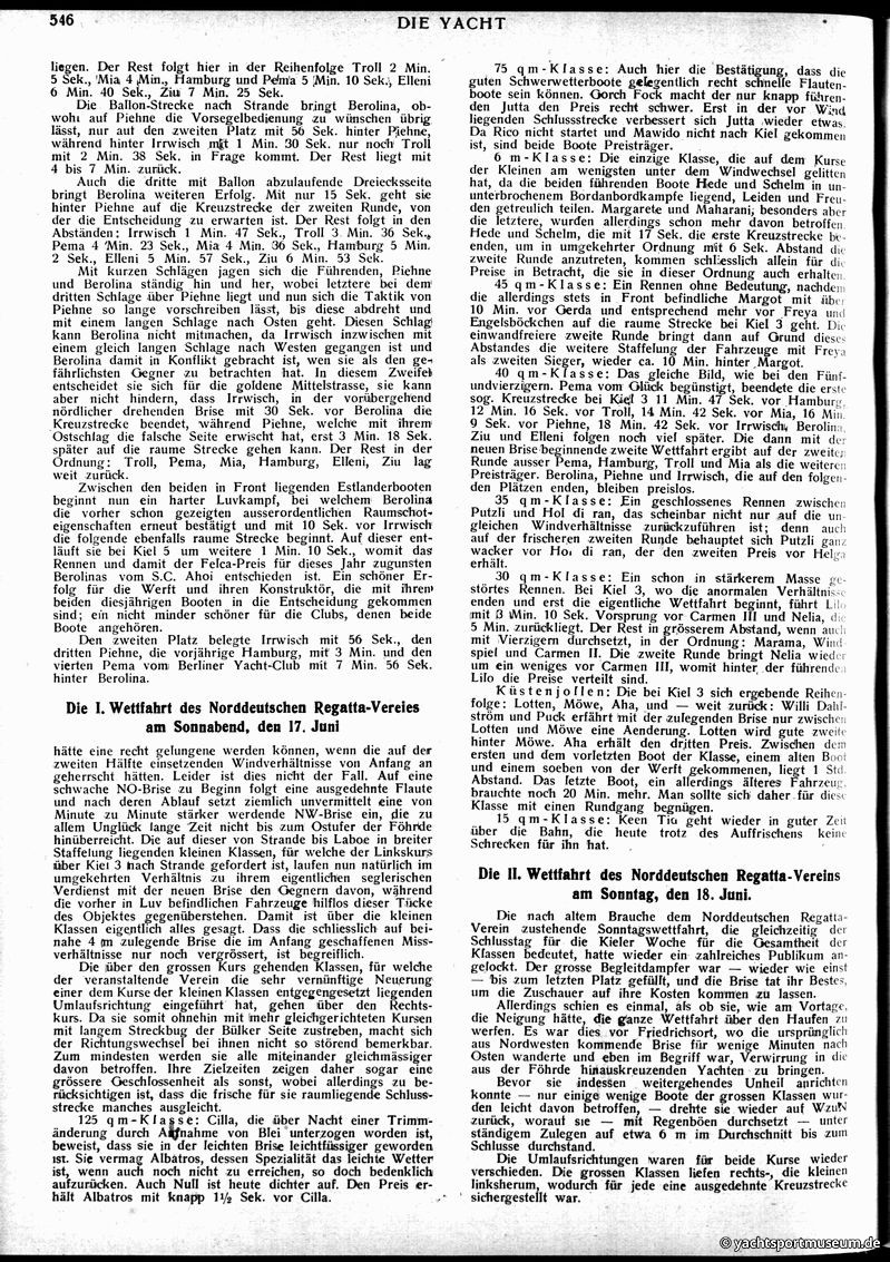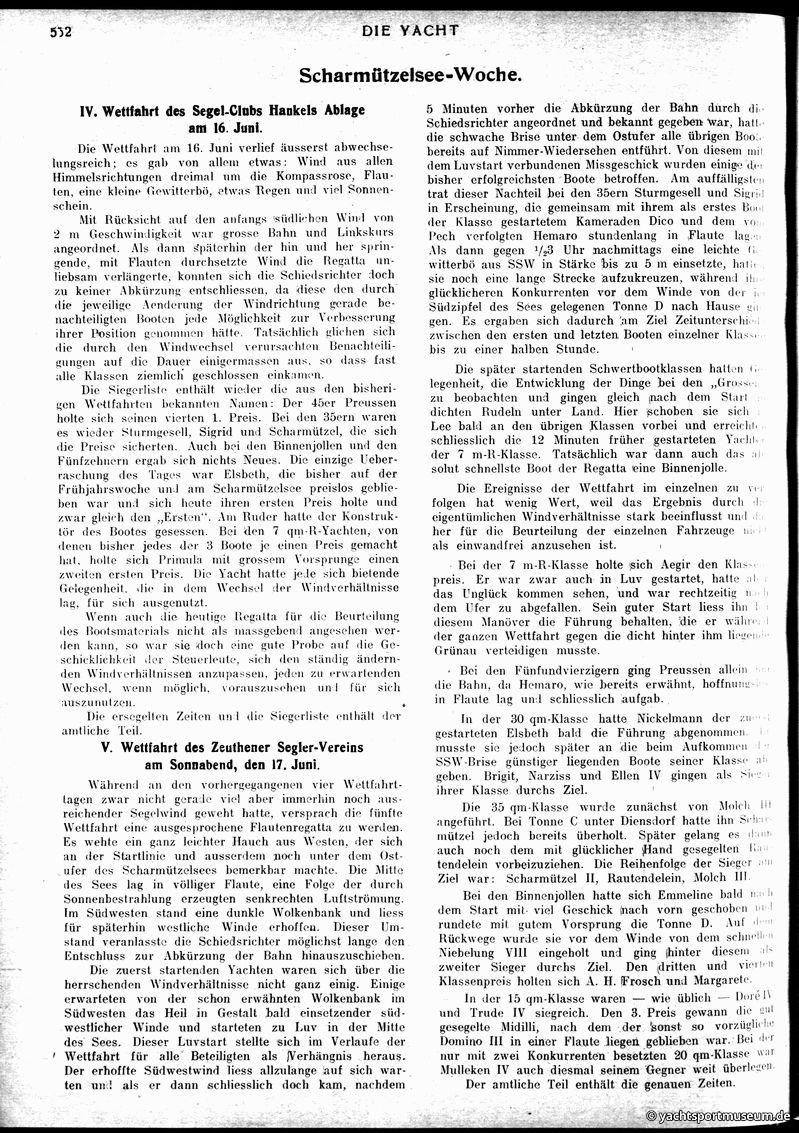 V. Wettfahrts-Berichte