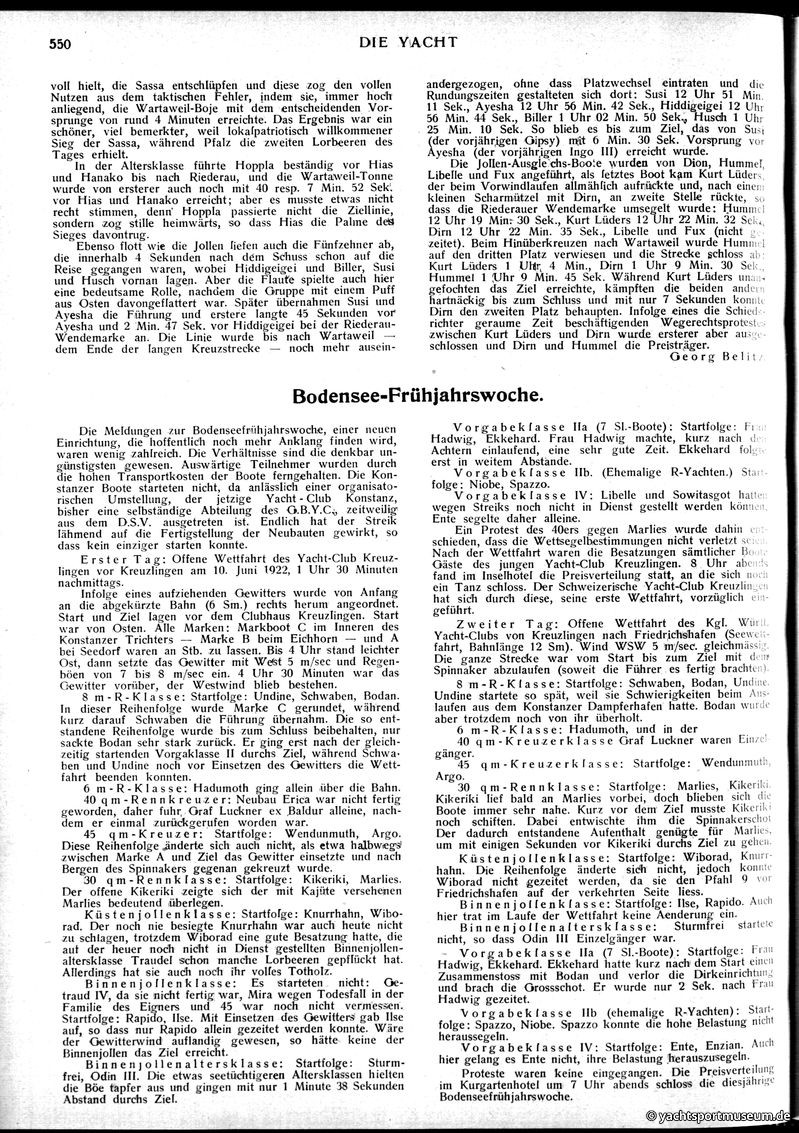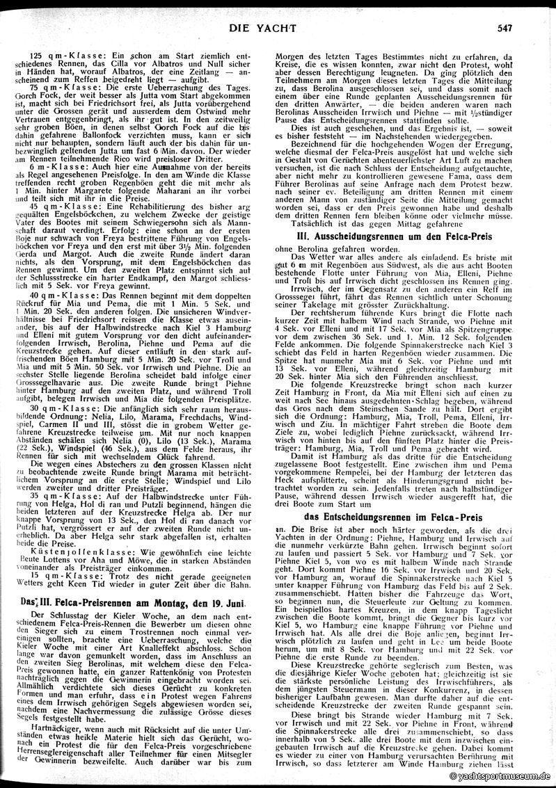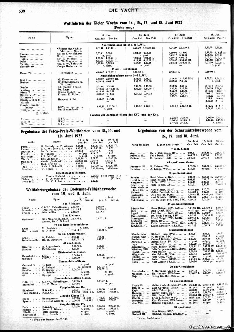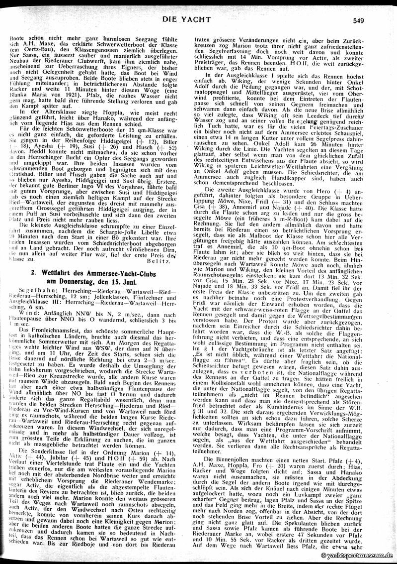 V. Wettfahrts-Berichte