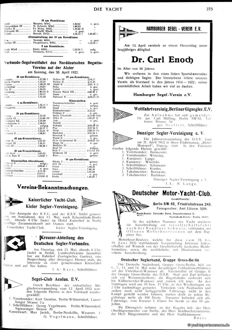 Norddeutscher Regatta-Verein, 30. April,