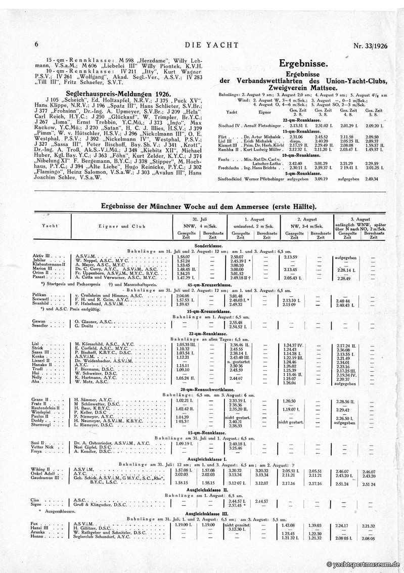 Wettfahrtergebnisse