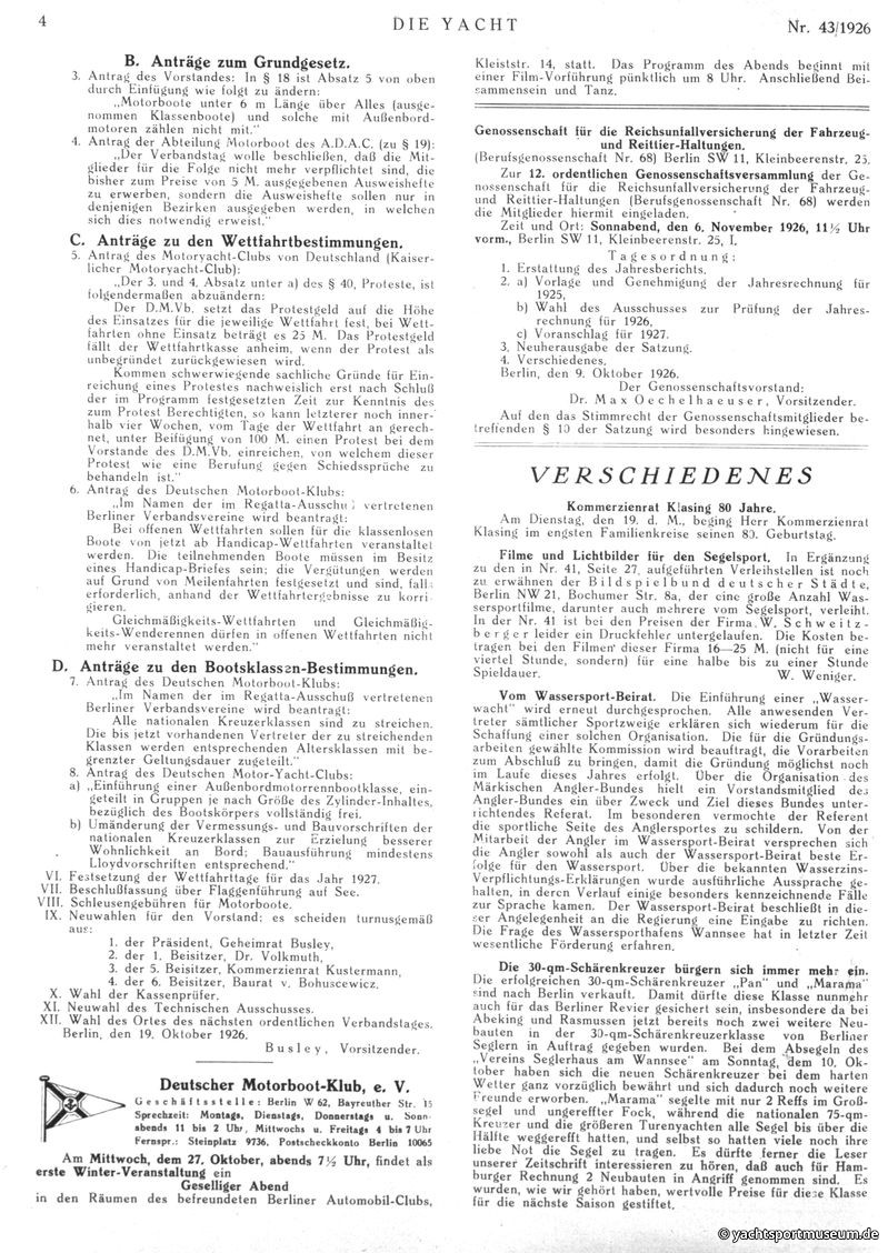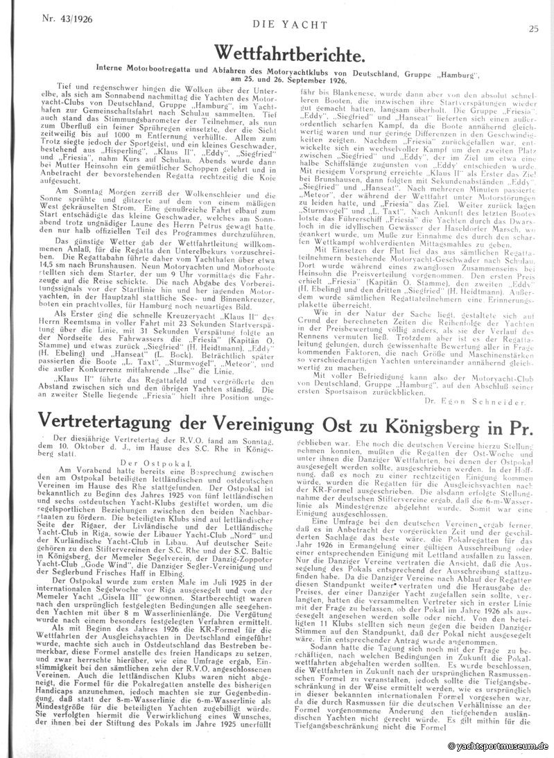VI. Wettfahrtberichte
