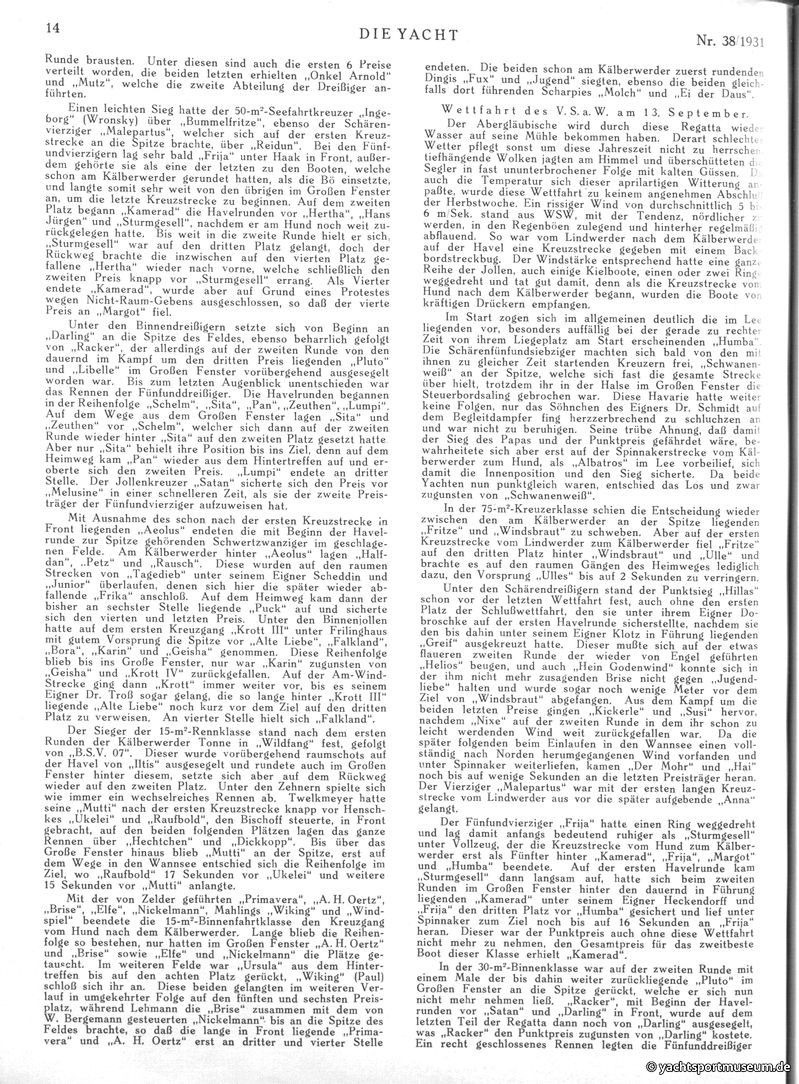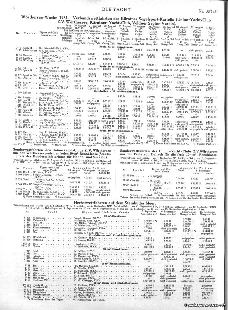 V. Wettfahrtberichte