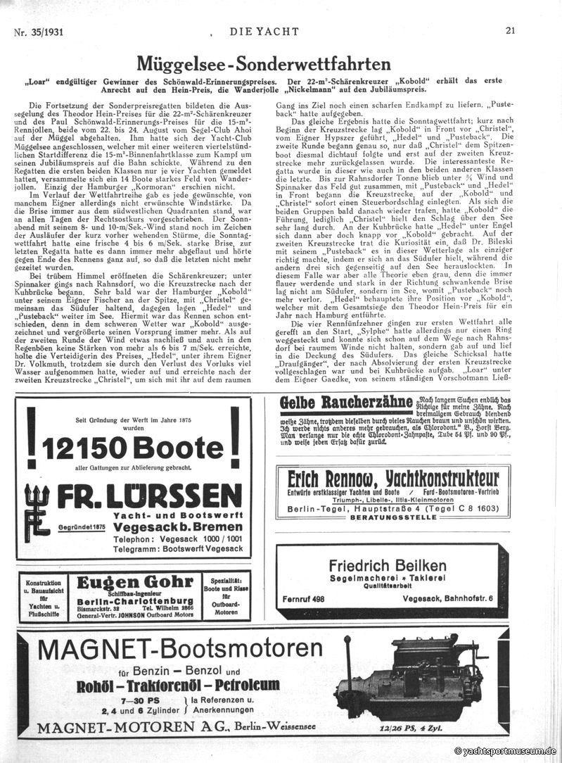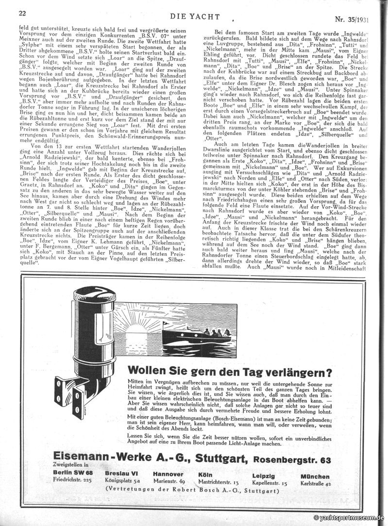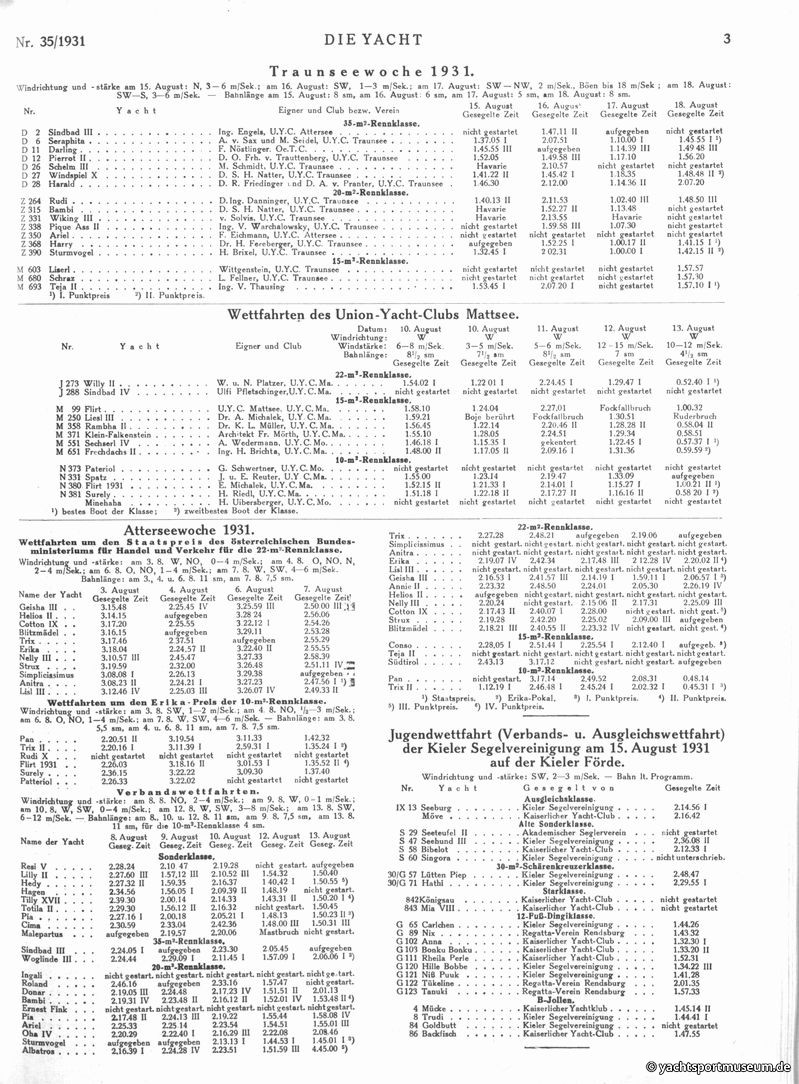 V. Wettfahrtberichte