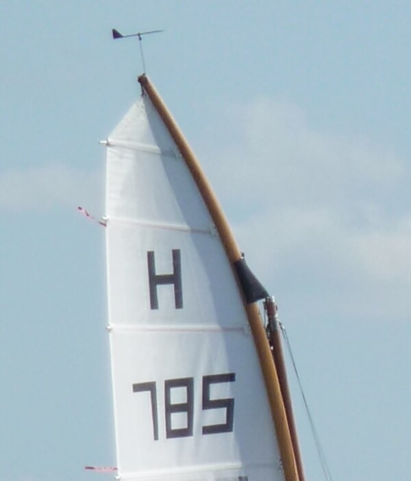 An den Ursprung, wie er auf diese Variante gekommen ist, kann er sich nicht mehr erinnern. Er weiß, dass er die Teile gleich hat bauen und die Dornen bzw. Zapfen drehen lassen. Den Beschlag an der Gaffelspiere findet er allerdings nicht so schön. Jetzt würde er es vielleicht eher mit einem Fallschloss machen. "Mit der Gaffel ist das sowieso alles nur Klöterkram. Die dreht zu weit auf. Das ist das hauptsächliche Problem", so Bergner weiter. Der Dorn "ersetzt" nach seiner Meinung eigentlich gar nichts. Das Piek- und das Klaufall bliebe ja erhalten. Man könnte im Prinzip den Hahnepotläufer sogar so bauen, dass man den auch fest aufhakt. Man bräuchte noch nicht mal eine Nase an der Gaffelspiere. Es ginge ja nur da drum, dass die Spiere nicht immer wegkippt. Bei der einen H-Jolle war das auf Nachfrage wohl so, dass auf Wunsch der Eigner die Spiere möglichst nahe senkrecht am Mast stehen sollte. Der Ansatz war, sie sollte eine vorgegebene Kurve haben, damit es dann aus der Ferne aussieht, als wenn die Linie das Vorstag hoch, ein Stückchen Mast und dann fast Peitschenmast-artig weiterläuft. "U.U. wären die mit einer geraden Gaffel noch besser gefahren", resümiert Bergner. Die größte Schwierigkeit sieht Bergner aber darin, dass viele Segelmacher leider nicht mehr in der Lage sind, vernünftige Gaffelsegel zu bauen. „Wenn Du ein gutes Gaffelsegel haben willst, dann hast Du keine andere Wahl, dann musst du entweder zu Raudaschl gehen oder zu Fritz. Die können das.“